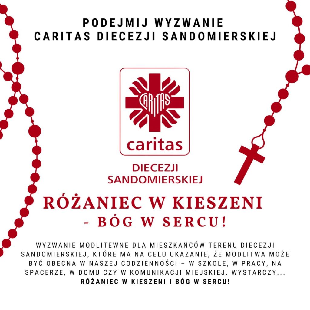 – #RóżaniecCaritas z dopiskiem: „Różaniec w kieszeni – Bóg w sercu”.