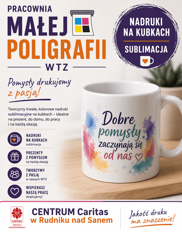Nowość w pracowni małej poligrafii WTZ – kubki z nadrukiem sublimacyjnym