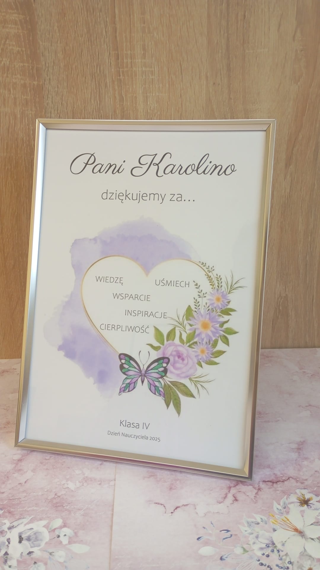 Dopełnieniem całości będzie ozdobna ramka w kolorze złotym, srebrnym lub białym.