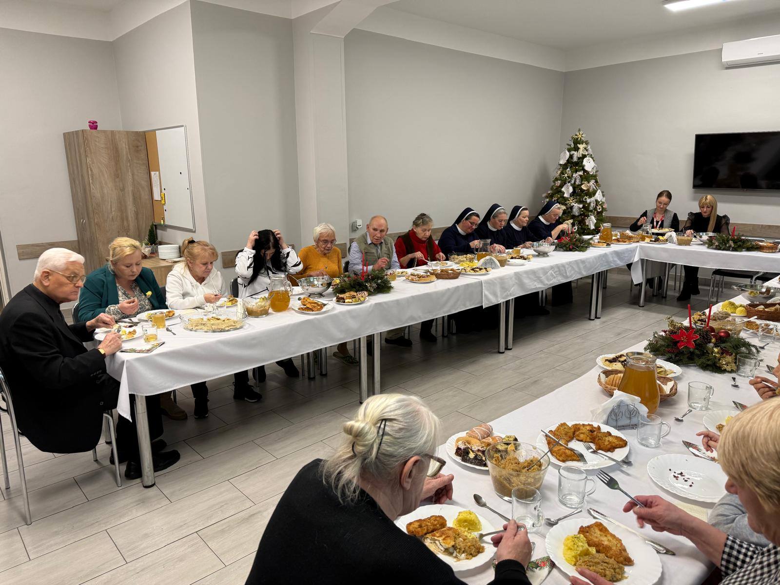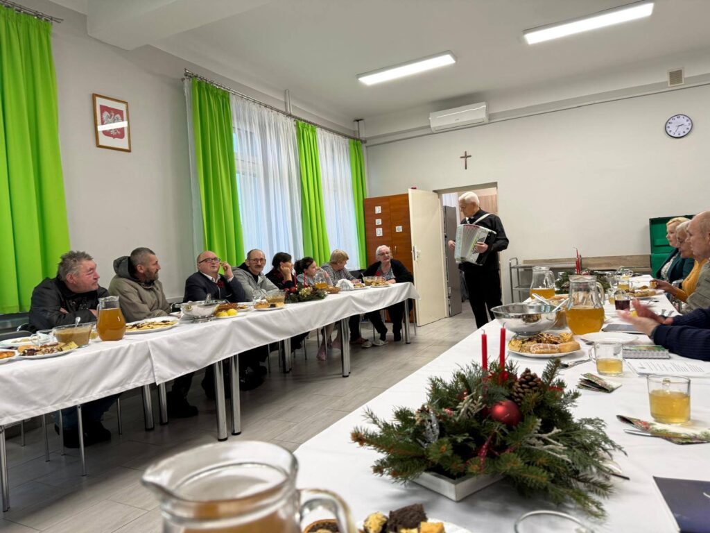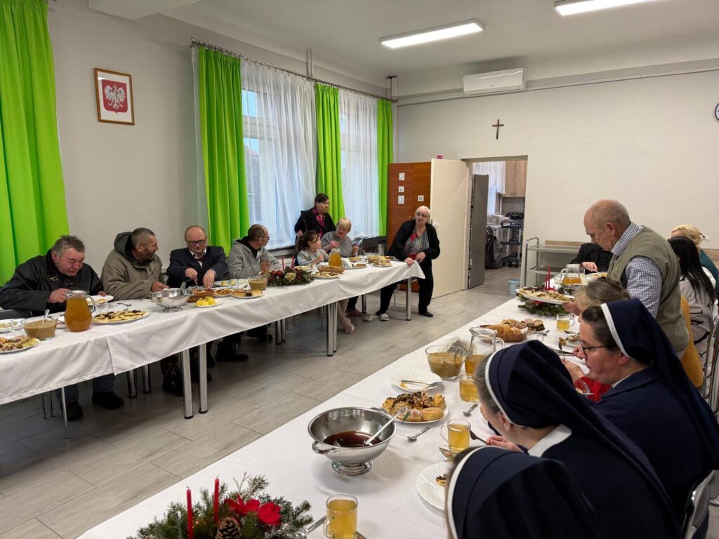 Po wspólnej modlitwie uczestnicy zasiedli do wigilijnego stołu. Przy dźwiękach kolęd, przy opłatku i prostych, tradycyjnych potrawach rodziły się wzruszenia, uśmiechy i szczere rozmowy. Były łzy – te z tęsknoty i te z wdzięczności – ale przede wszystkim była bliskość drugiego człowieka. Ta Wigilia pokazała, że święta nie są tylko datą w kalendarzu, lecz spotkaniem serc. Że nawet w trudnych życiowych sytuacjach można doświadczyć ciepła, akceptacji i prawdziwej wspólnoty. Dla wielu był to jedyny wigilijny wieczór spędzony w gronie innych osób – wieczór, który na długo pozostanie w pamięci
